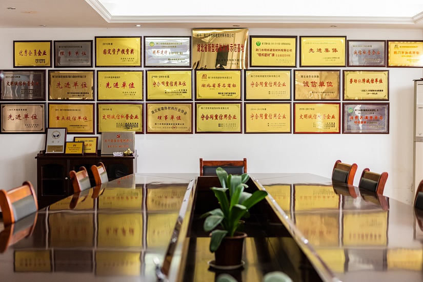 “明邦”商標被認定為“湖北省著名商標”,同時被評定為“湖北名牌”產品,企業同時被評定為“湖北省重合同守信用企業”、“湖北省新型墻材產業化示范基地”和“荊門市循環(huán)經濟示范企業”,公司通過了“綠色建材評價標識證書”、“GB/T 45001-2020職業健康安全管理體系認證證書”、“GB/T 19001-2016質量管理體系認證”、“GB/T 24001-2016環(huán)境管理體系認證證書”。